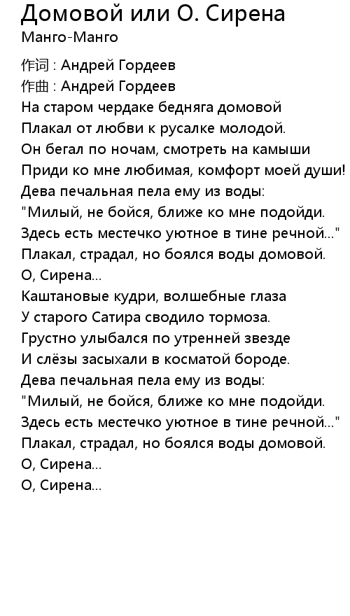 Домовой или О. Сирена . Lyrics