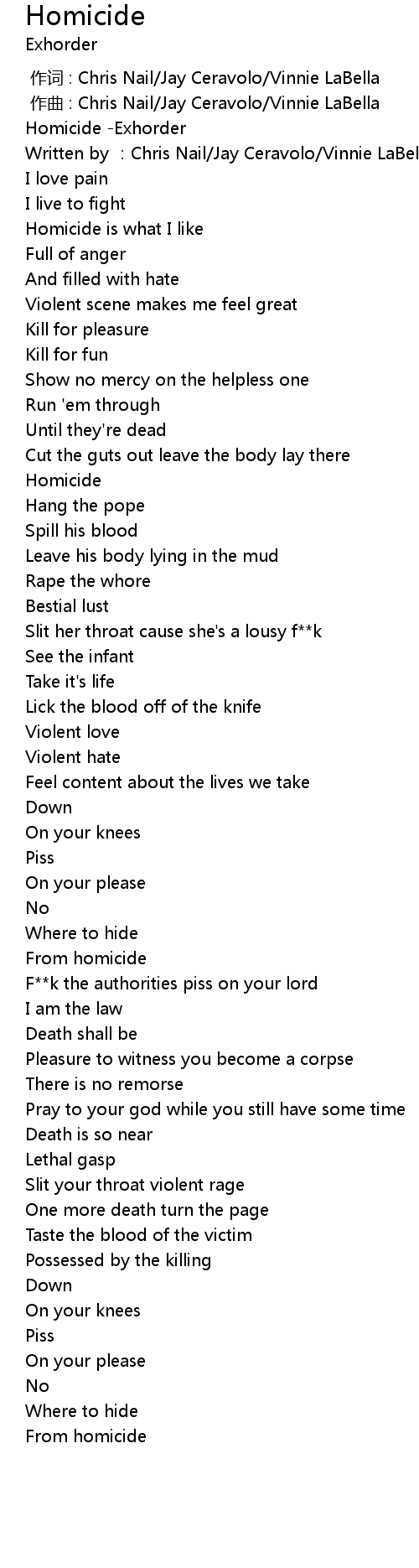 | [00:38.510] | Slit her throat cause she's a lousy f**k |