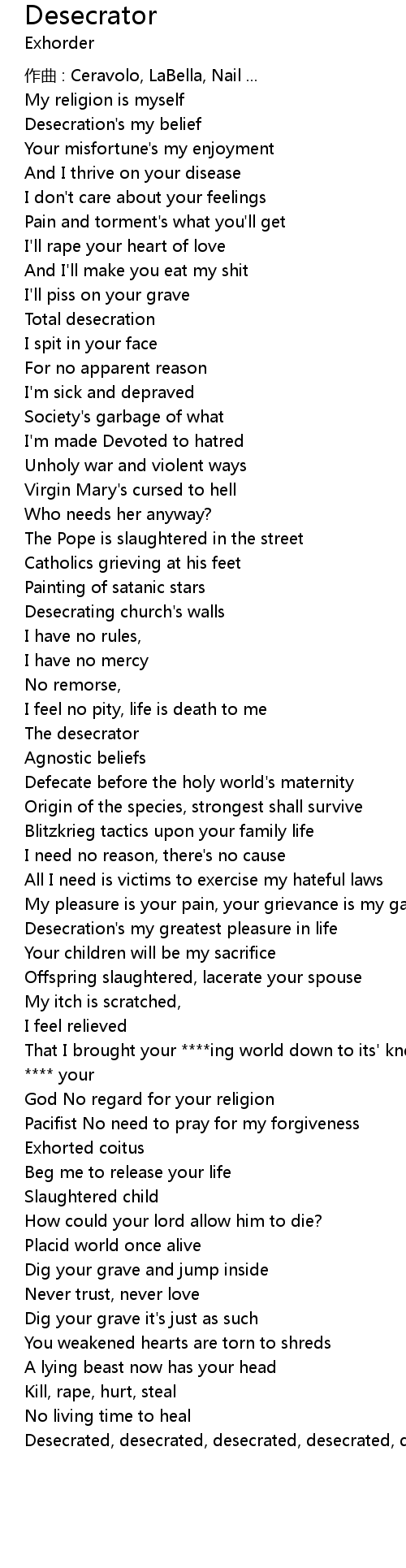| Desecrated, desecrated, desecrated, desecrated, die!! |