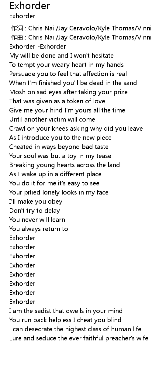 | [00:00.000] | zuò cí : Chris Nail Jay Ceravolo Kyle Thomas Vinnie LaBella |
