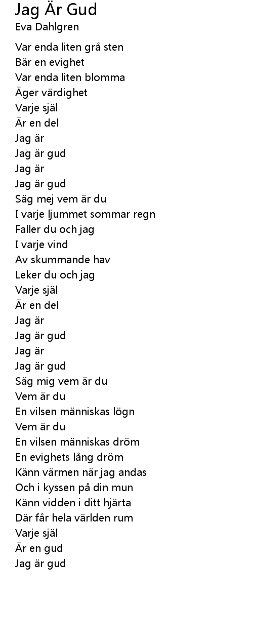| Song | Jag Är Gud |