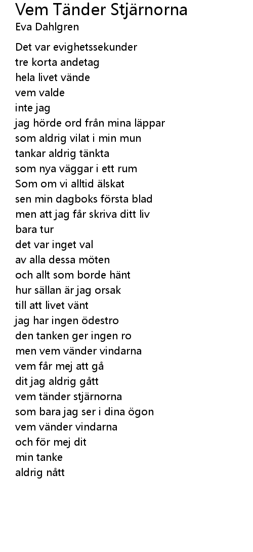 | Song | Vem Tänder Stjärnorna |