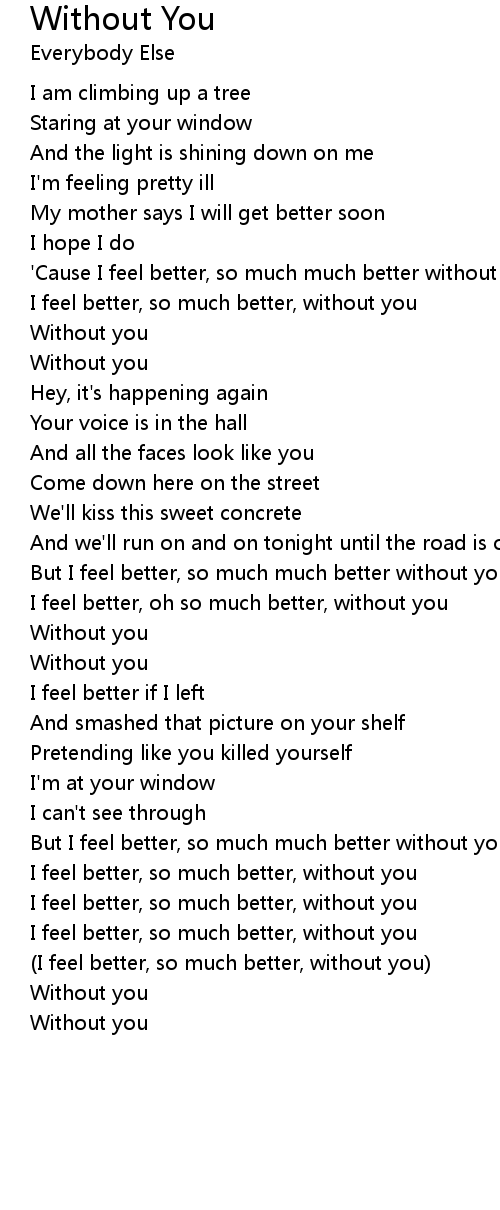 (I feel better, so much better, without you) |