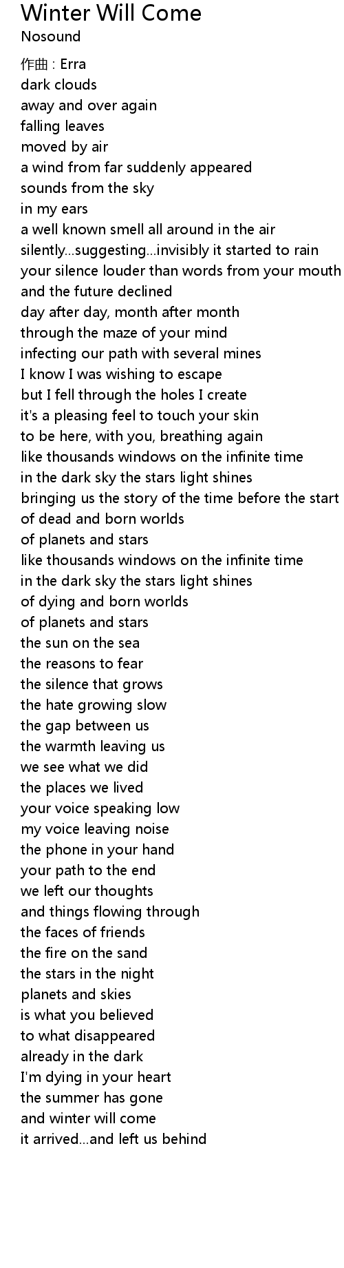 | Song | Winter Will Come |
