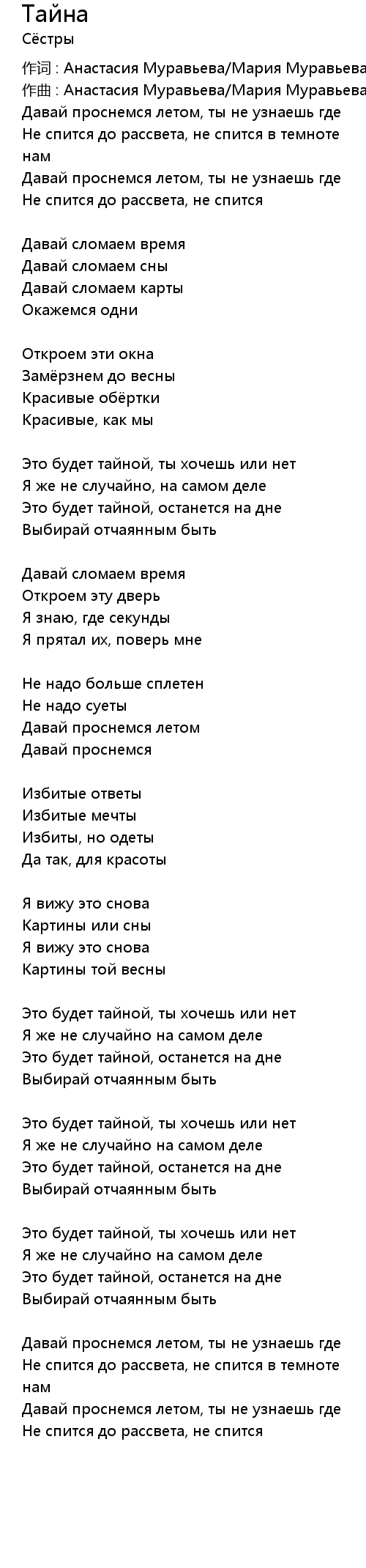 作词 : Анастасия Муравьева/Мария Муравьева |