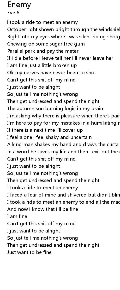 i took a ride to meet an enemy |