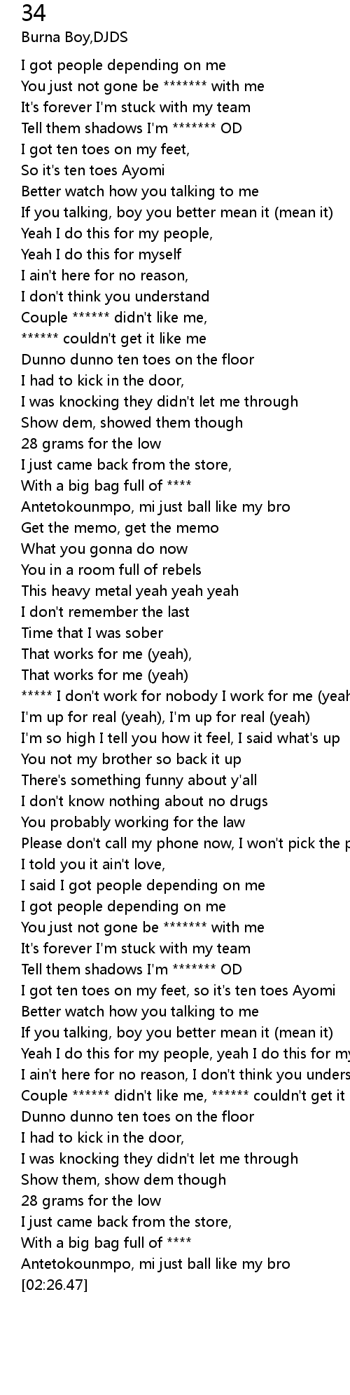 | [00:34.98] | ****** couldn't get it like me |