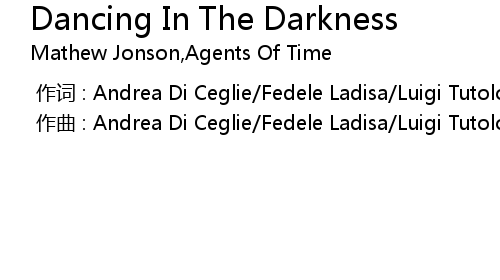 | [00:00.000] | 作词 : Andrea Di Ceglie/Fedele Ladisa/Luigi Tutolo/Mathew Jonson |