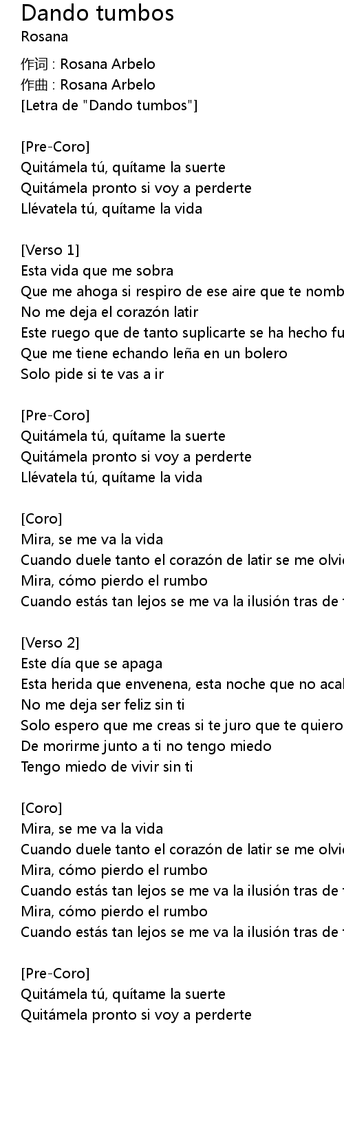 | [Letra de "Dando tumbos"] | |