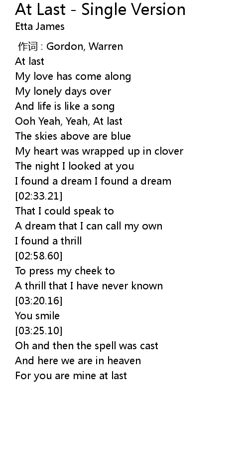 | [01:32.18] | Ooh Yeah, Yeah, At last |