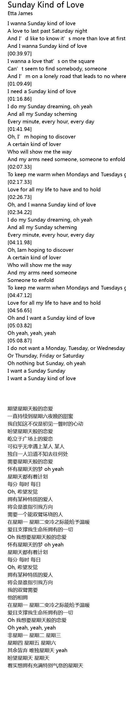 | [02:28.85] | Oh, and I wanna Sunday kind of love |