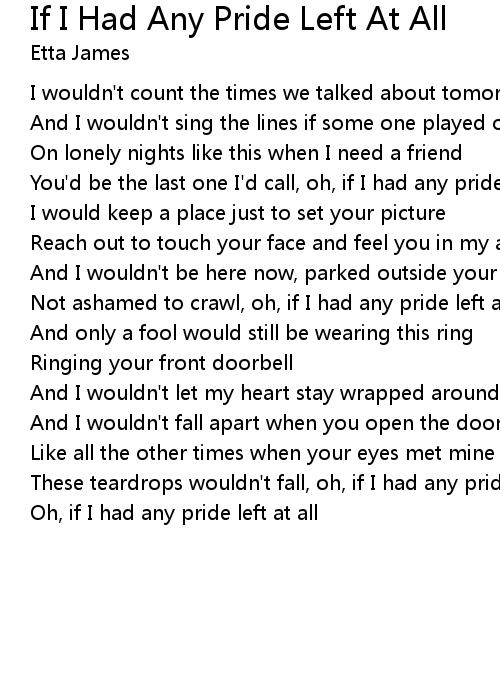 You'd be the last one I'd call, oh, if I had any pride left at all |