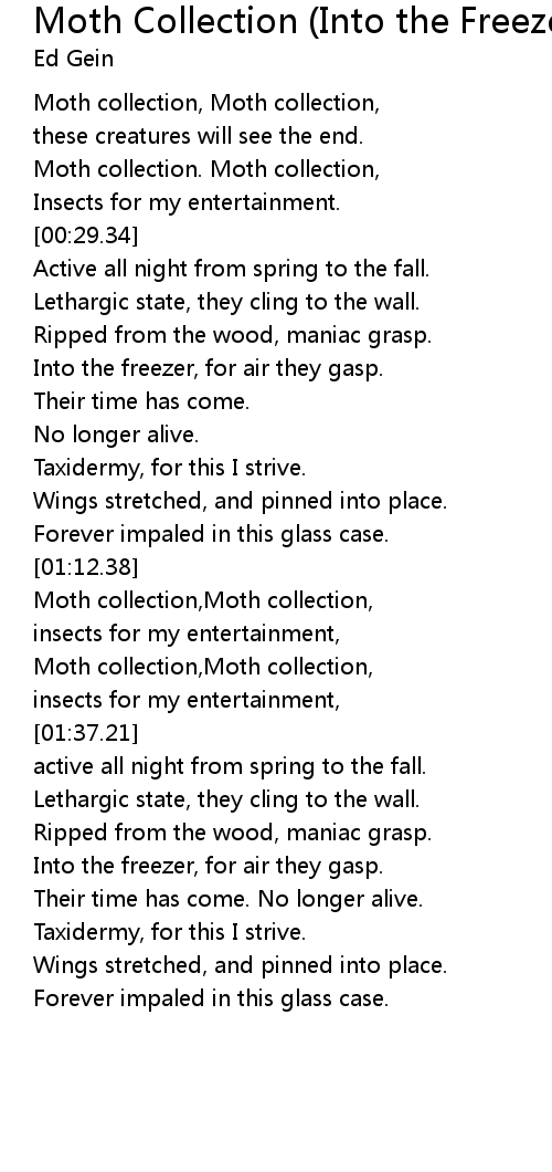 | [01:01.89] | Wings stretched, and pinned into place. |