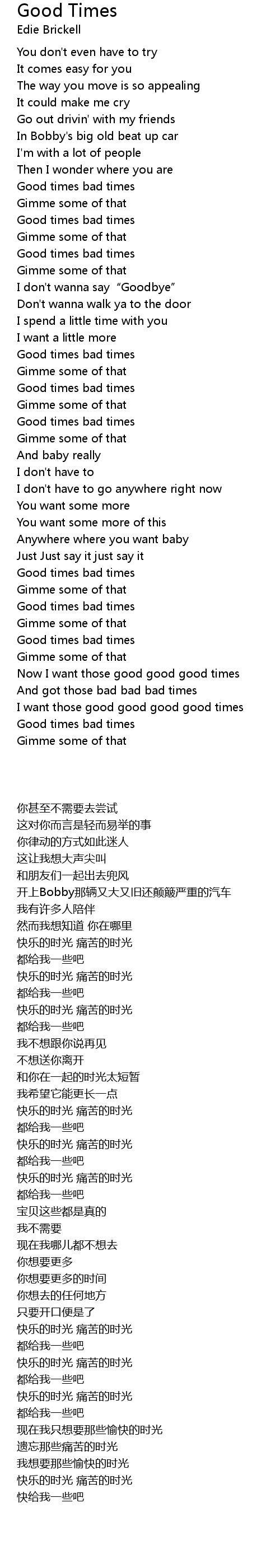 | [02:58.38] | I want those good good good good times |