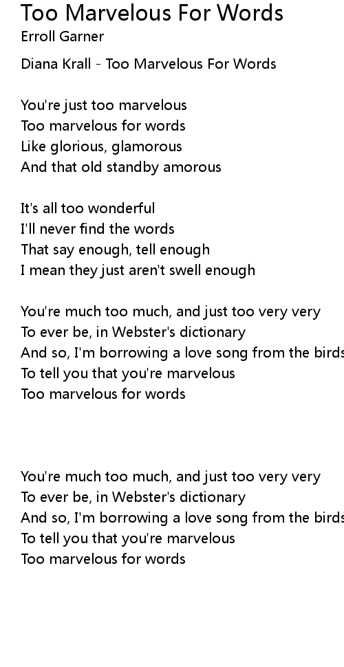 Too Marvelous For Words