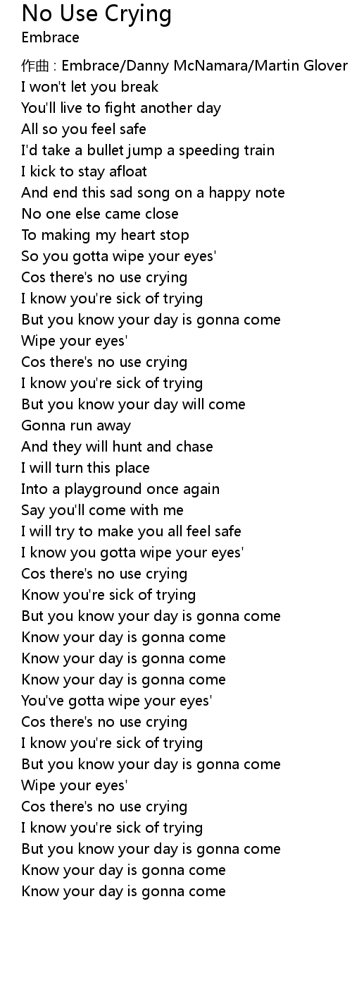 | Cos there' s no use crying | |