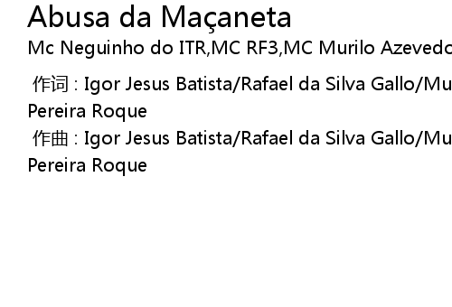| [00:00.000] | zuo qu : Igor Jesus Batista Rafael da Silva Gallo Murilo Azevedo Pereira Roque |