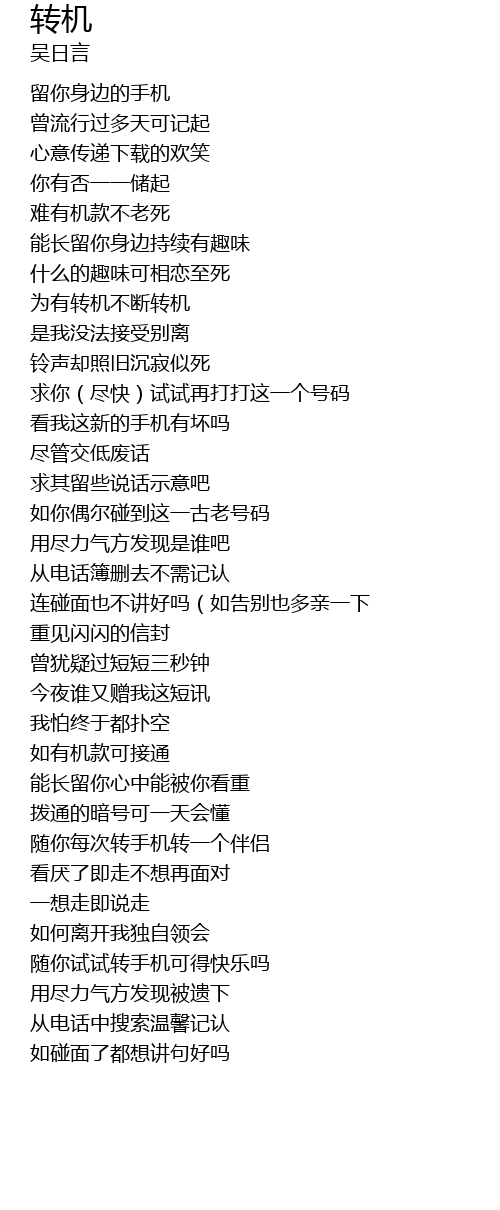 | [00:41.73] | wèi yǒu zhuǎn jī bù duàn zhuǎn jī |