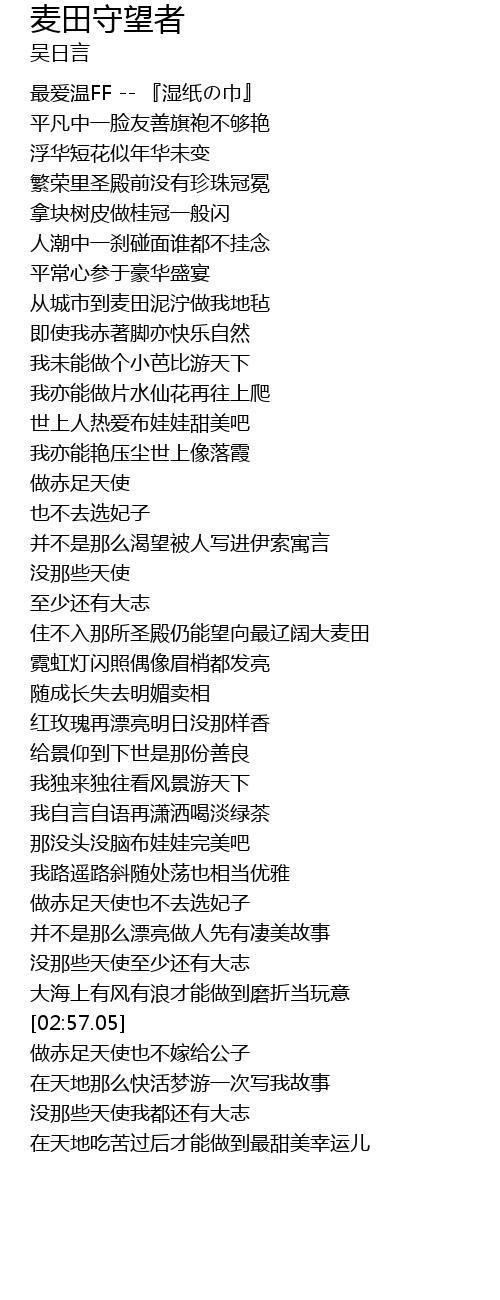 | Song | 麦田守望者 |