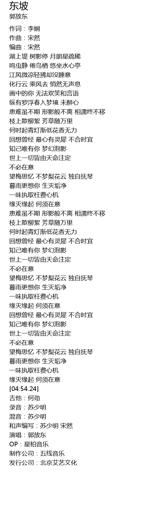| [05:18.35] | 演唱:郭放东 |