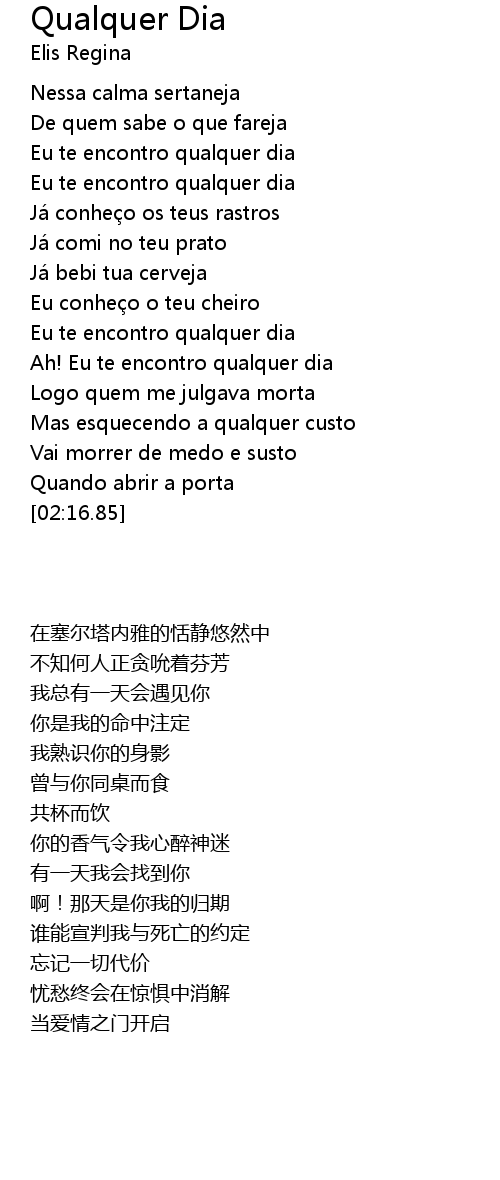 | [01:35.72] | Ah! Eu te encontro qualquer dia |