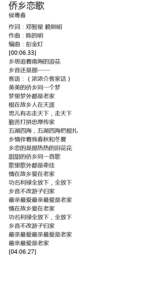 | [02:28.86] | 甜甜的侨乡同一首歌 |