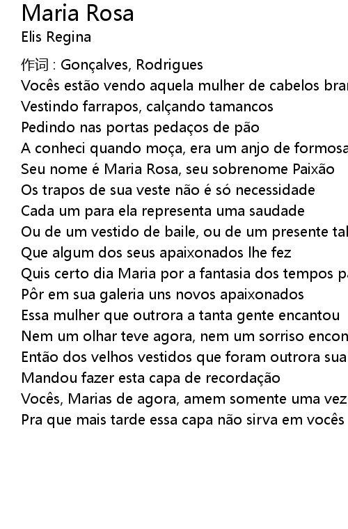 | Seu nome é Maria Rosa, seu sobrenome Paixão | |