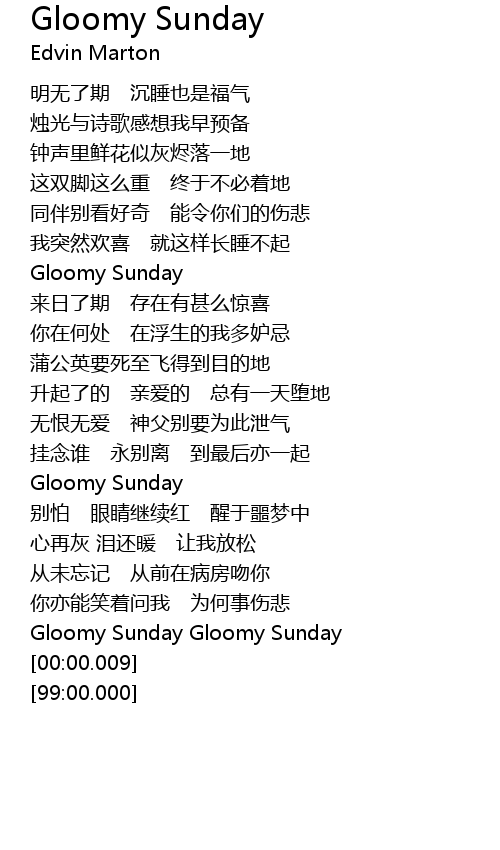 | [02:52.46] | Gloomy Sunday Gloomy Sunday |