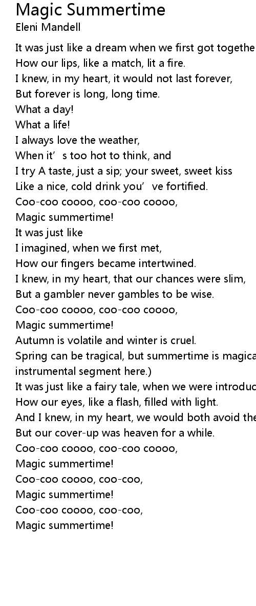 | Spring can be tragical, but summertime is magical. There' s an 18second instrumental segment here. | |