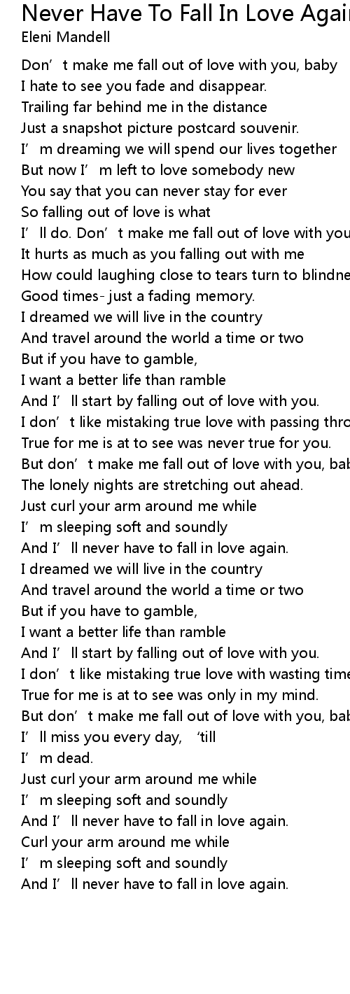 | I' ll do. Don' t make me fall out of love with you, baby | |