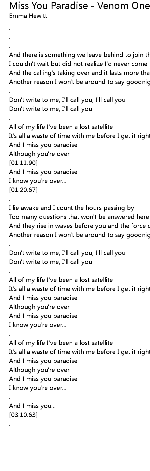 Miss You Paradise - Venom One Radio Edit Lyrics