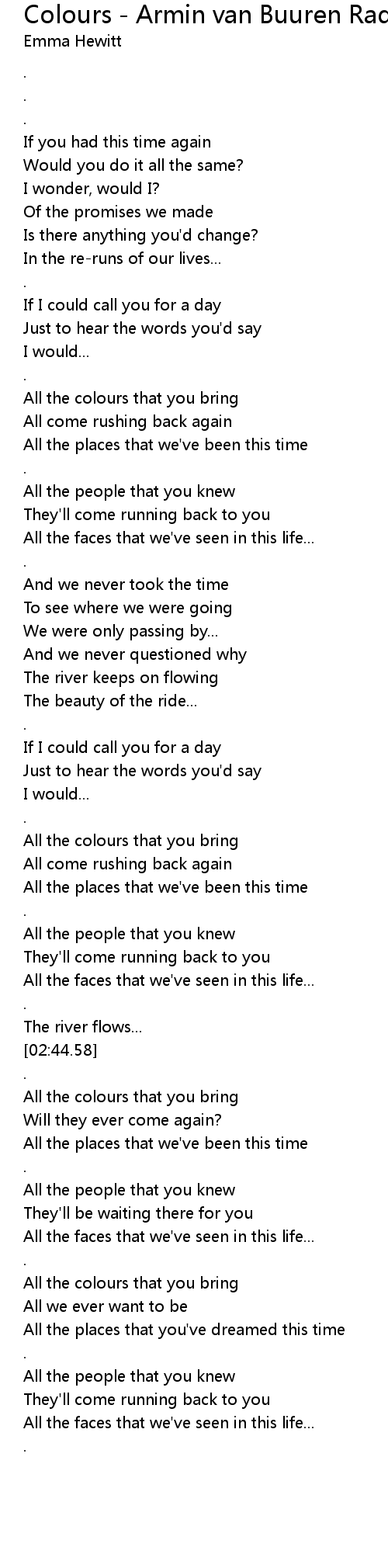 Colours - Armin van Buuren Radio Edit Lyrics