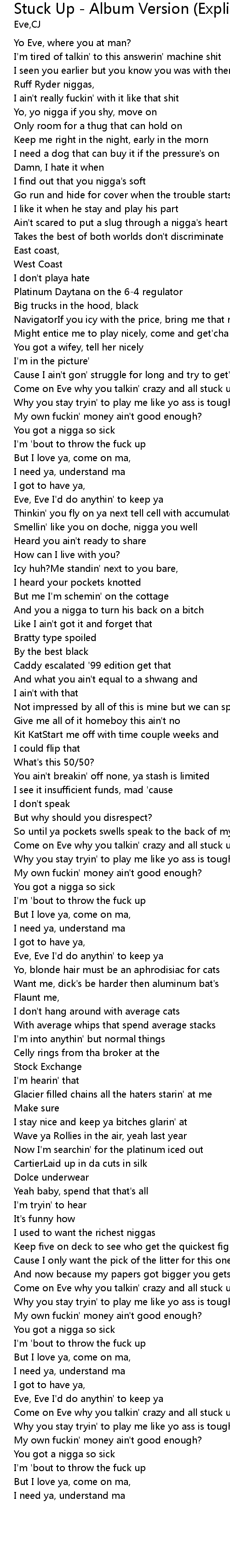 | Come on Eve why you talkin' crazy and all stuck up? | |