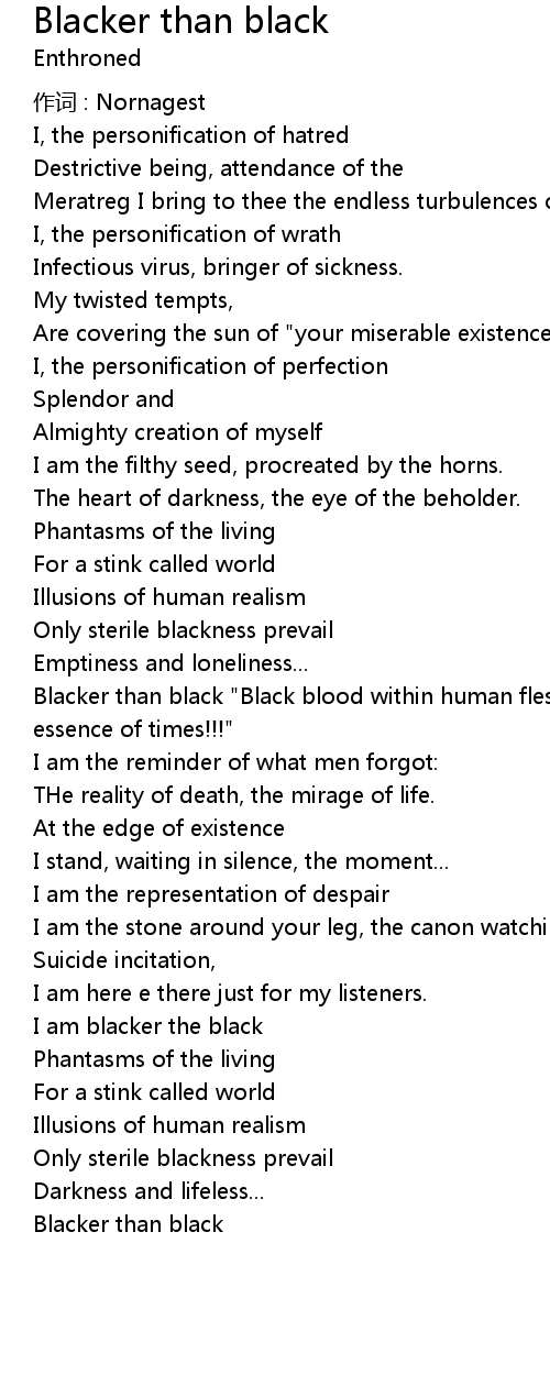 | Blacker than black "Black blood within human flesh.... Prevail the anti cosmic essence of times!!!" | |