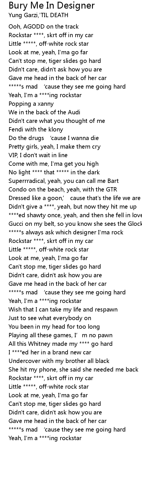 | [01:22.94] | Rockstar ****, skrt off in my car |