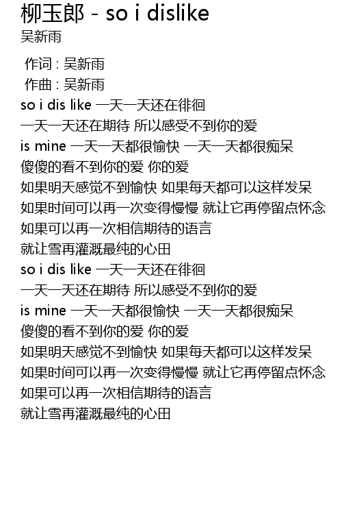 | [00:15.039] | so i dis like yi tian yi tian hai zai pai huai |