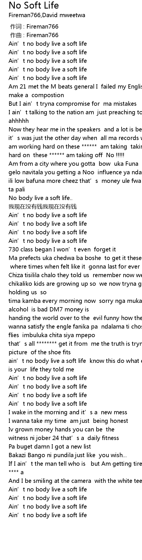 | [02:20.80] | ain’t no body live a soft life know this do what ever with it this is your life they told me |
