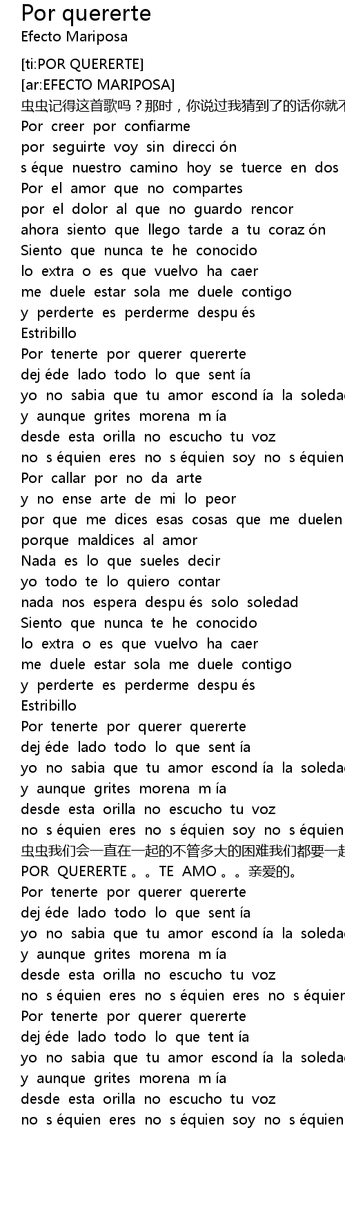 | [02:57.46] | POR QUERERTE .. TE AMO .. qīn ài de. |