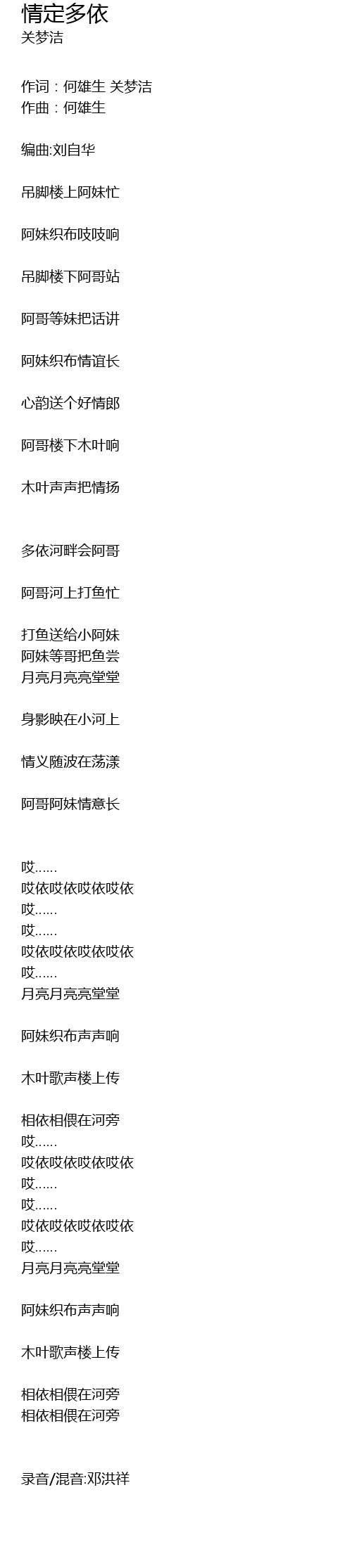 | 作词:何雄生 关梦洁 | |