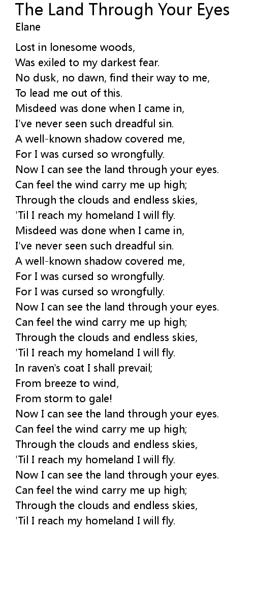 Now I can see the land through your eyes. |
