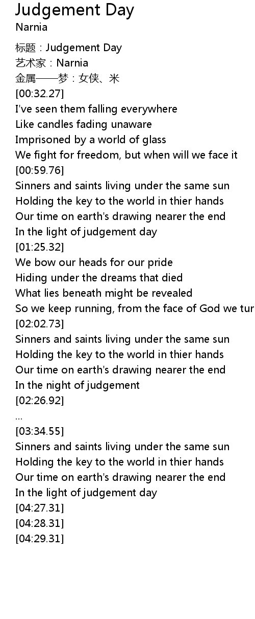 | [00:00.00] | 标题:Judgement Day |