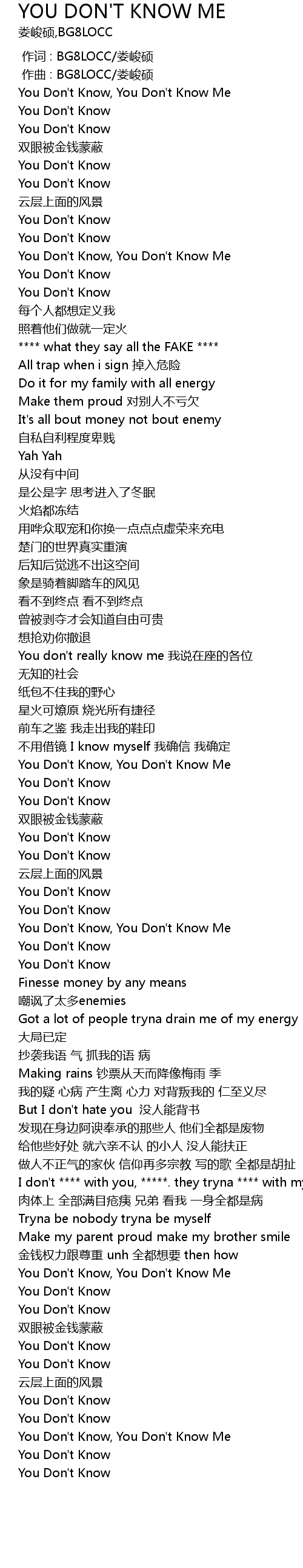 | [03:03.750] | You Don't Know, You Don't Know Me |