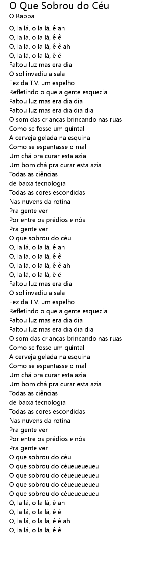 | Song | O Que Sobrou do Céu |