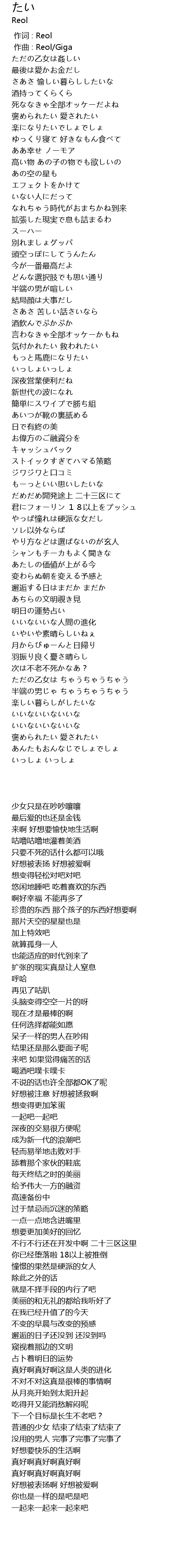 | [00:00.000] | zuò cí : Reol |
