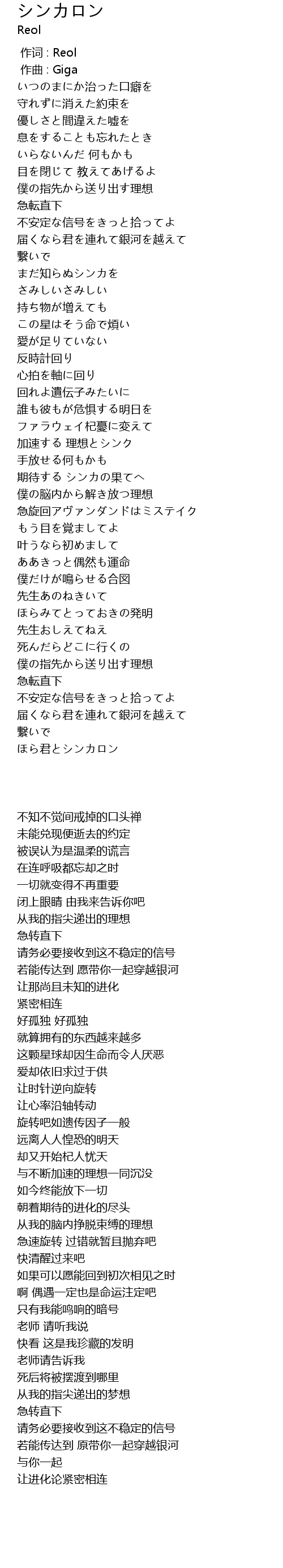 | [00:00.000] | 作词 : Reol |