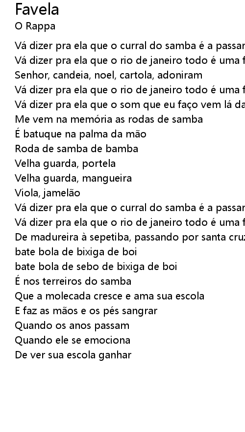 | Va dizer pra ela que o rio de janeiro todo e uma favela, | |