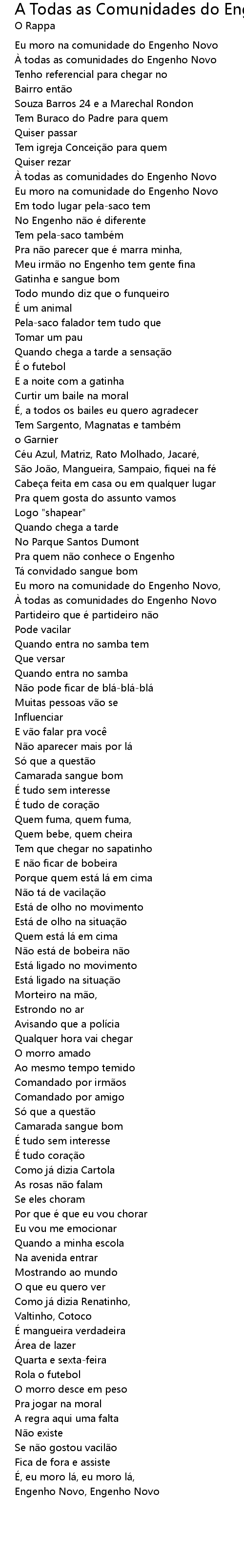 | Song | A Todas as Comunidades do Engenho Novo |