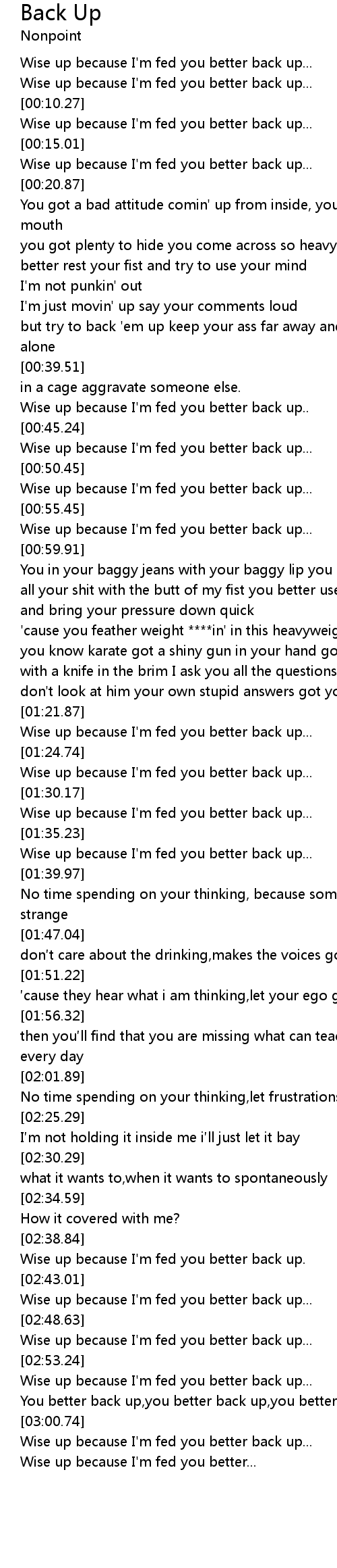 | [00:57.94] | Wise up because I'm fed you better back up... |