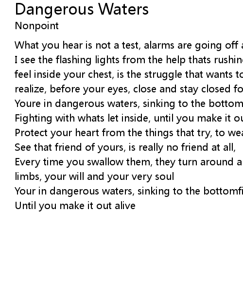 | Your in dangerous waters, sinking to the bottomfighting with whats let inside, | |