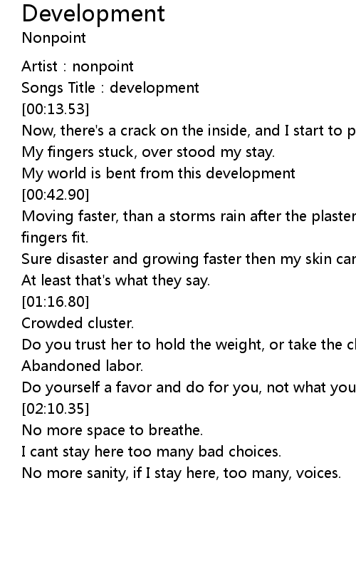 | [00:05.09] | Songs Title:development |